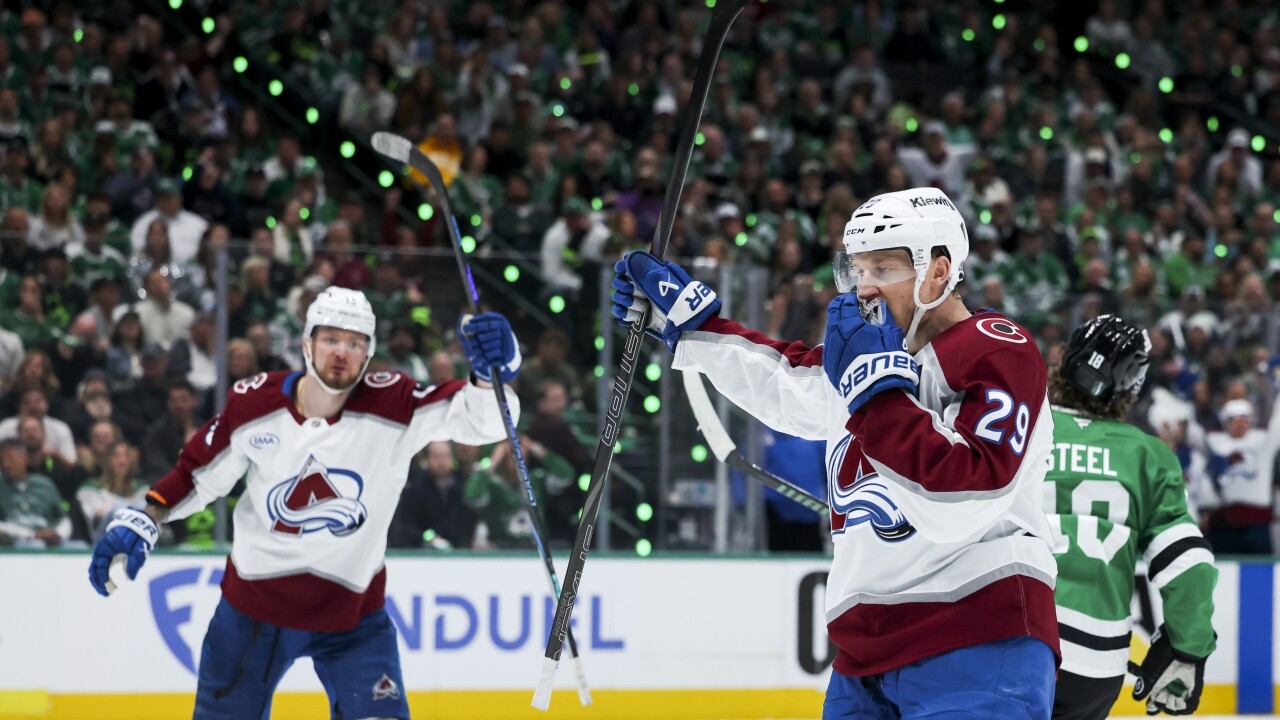 MacKinnon Scores 2 Avs Pile On In Third Period For 5 1 Win Over Stars In Game 1