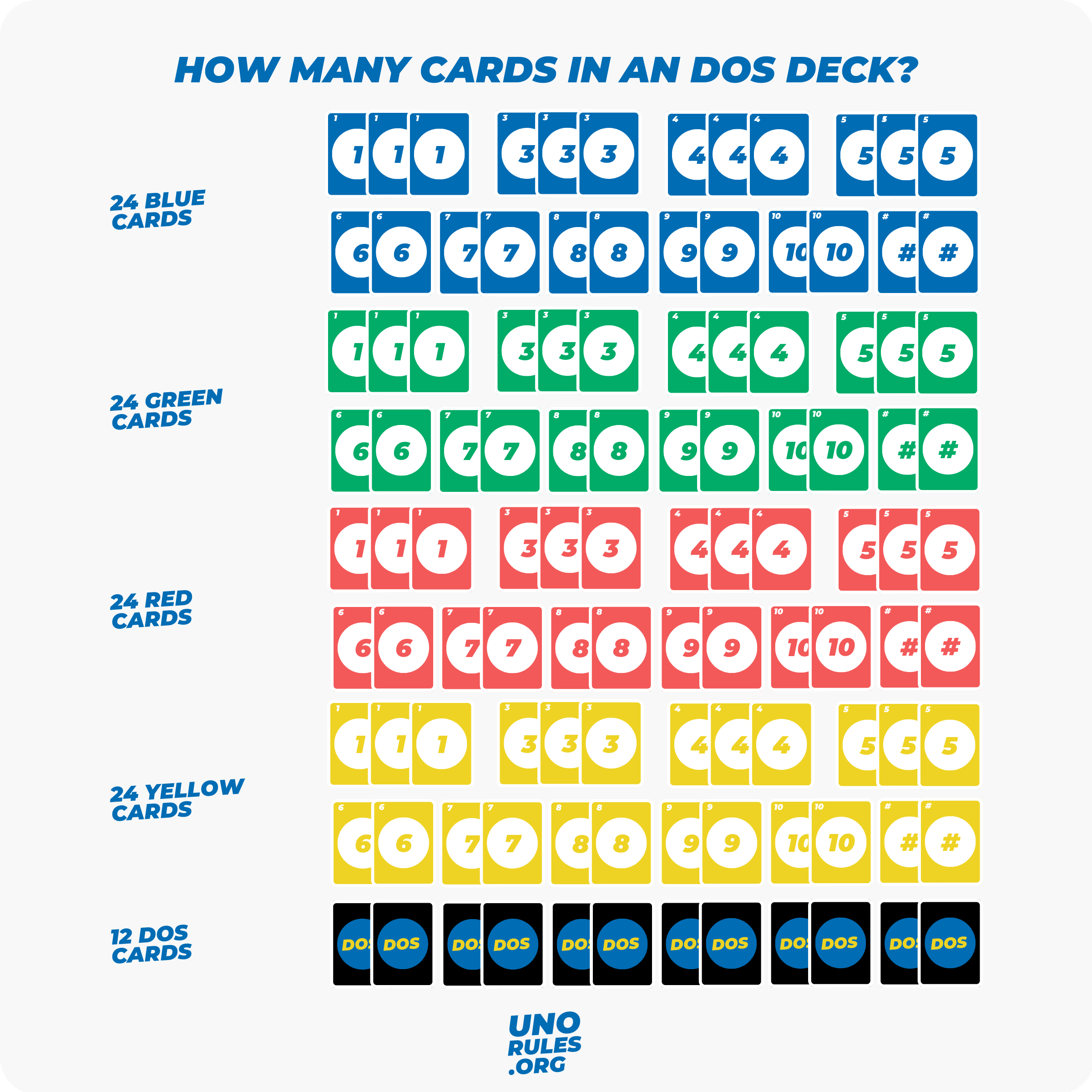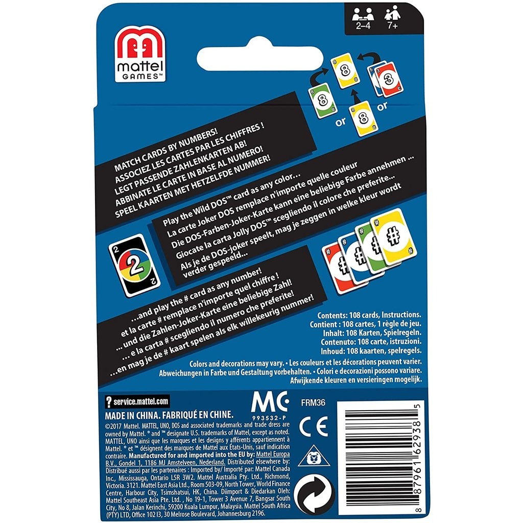 In DOS, the objective is to be the first player to get rid of all your cards. Just like UNO, players take turns matching cards by number or color. But in DOS, you can also match cards by value, adding a new layer of strategy to the game.