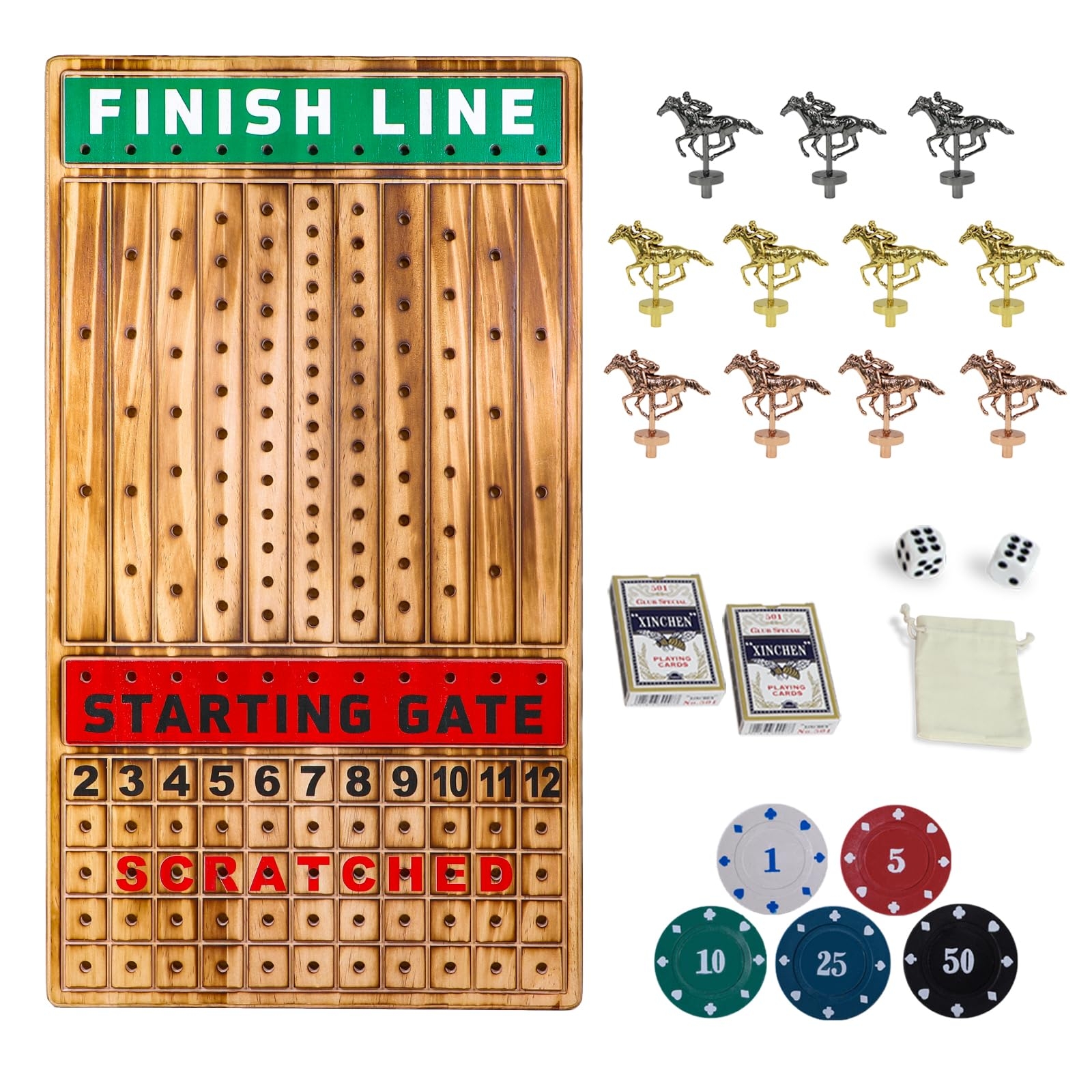 Amazon HOROW Metal Horse Racing Board Game Card Board Game Finish Line Luxury Edition Solid Wood Race Game Board 11 Batches Of Metal Model Horses 2 Sets Of Dice And 2 Boxes