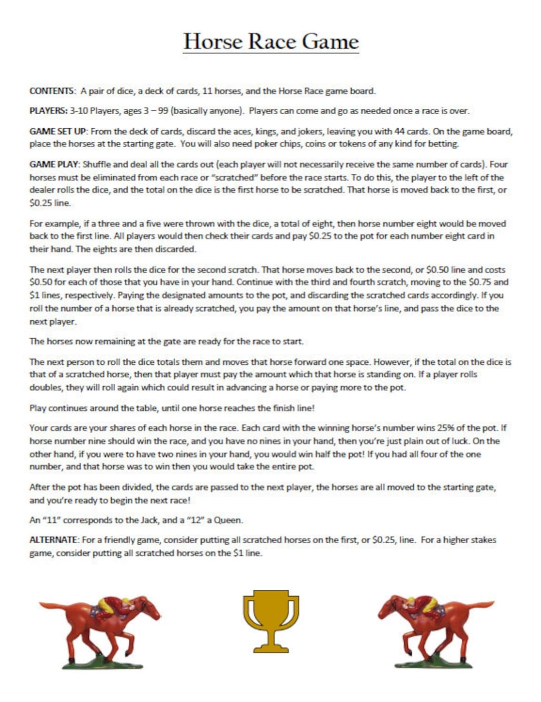 Horse Race Game Rules downloadable Etsy Ireland