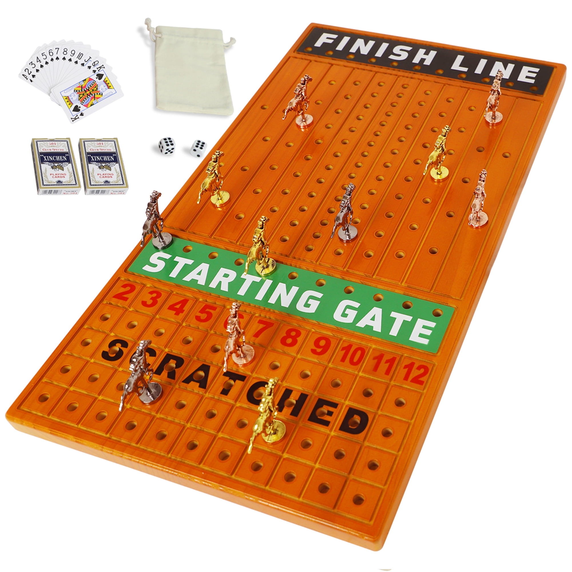 Walmart s Derby Wooden Horse Race Board Game With 11 Metal Horses 4 Dice 2 Card Boxes Walmart