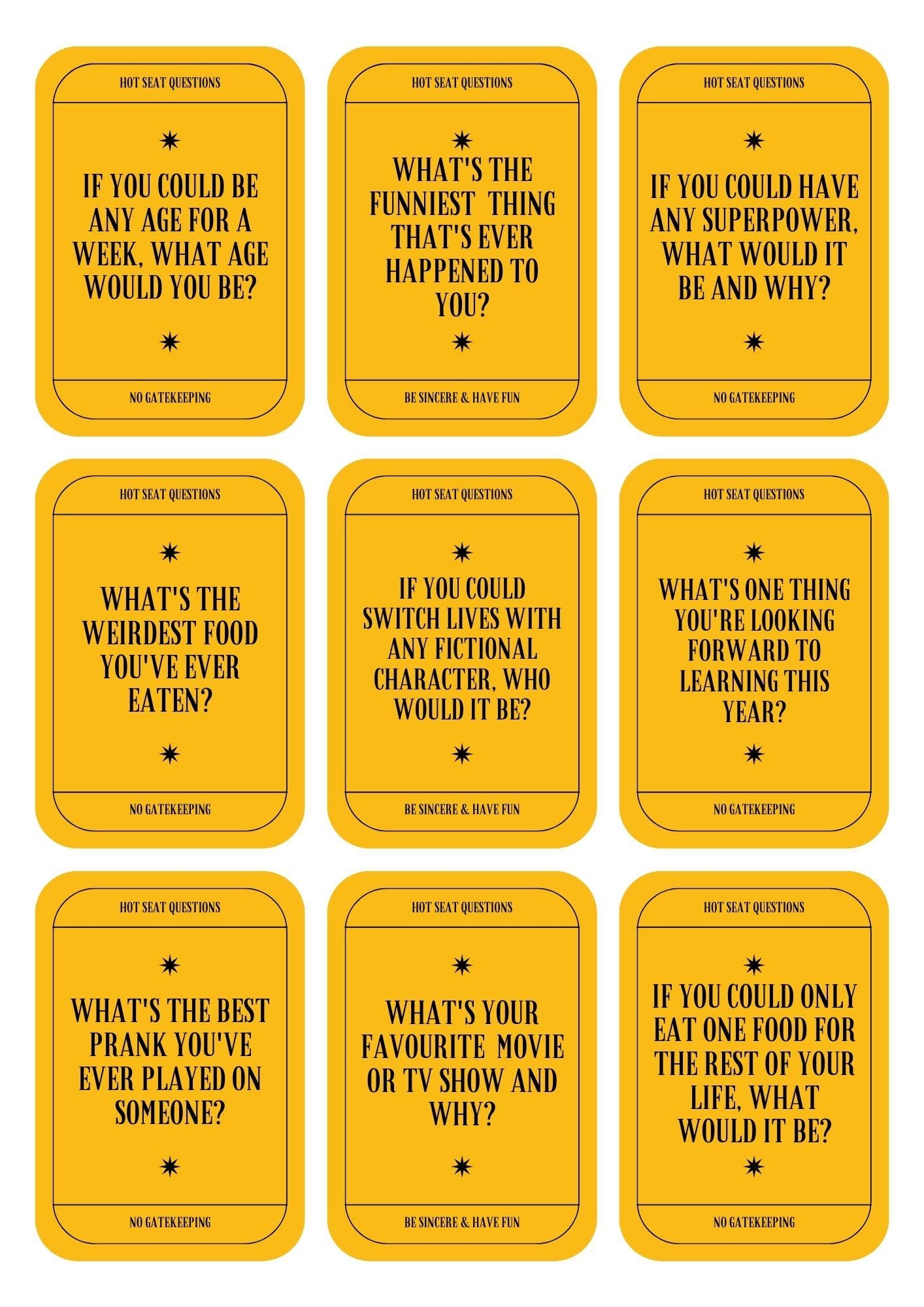 Hot Seat Questions Cards Back To School Teacher Student Ice Breaker Conversation Fun Interactive Engaging New Class Printable Etsy