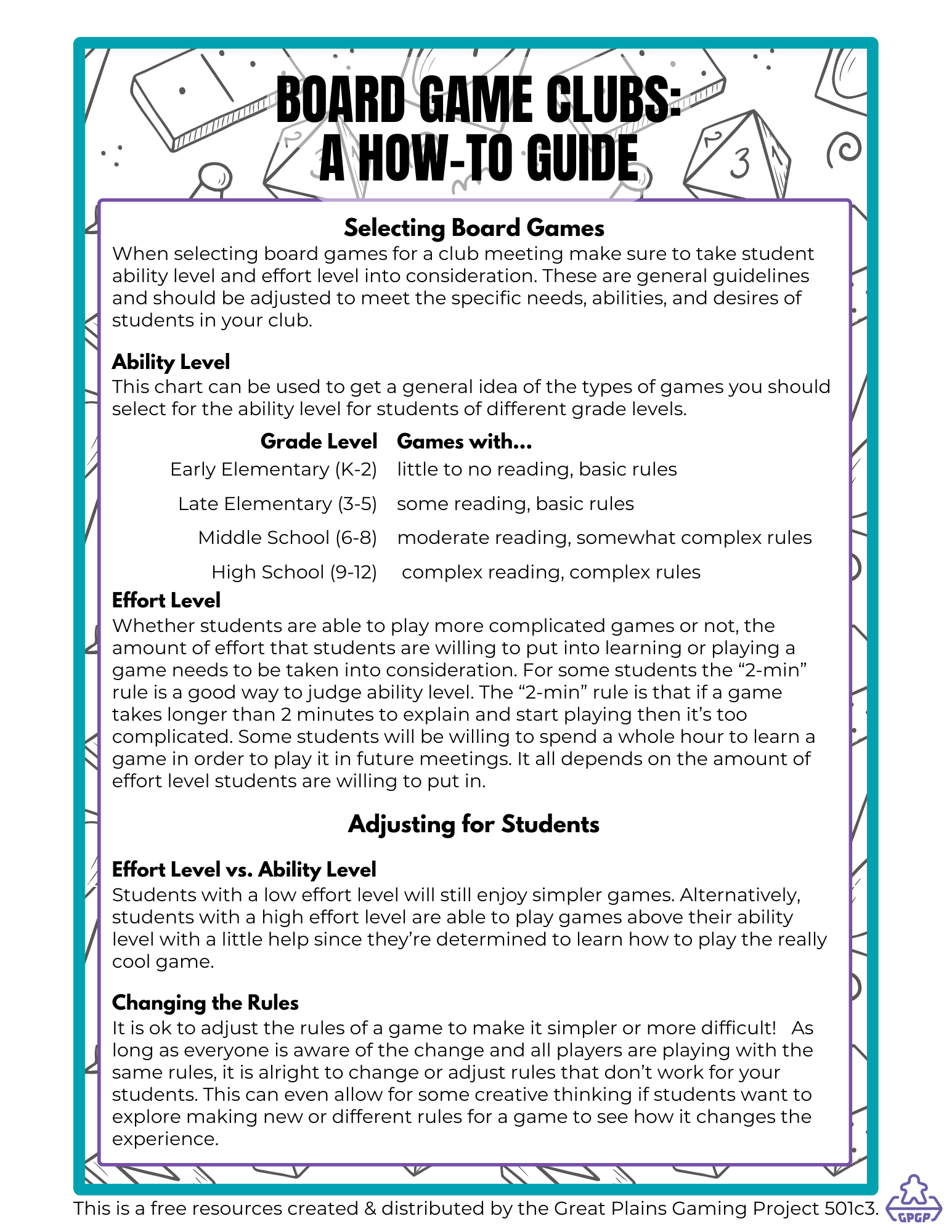 Educator s Guide To Starting A Board Game Club Great Plains Gaming Project