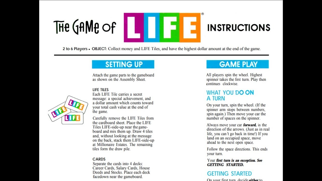 Game Of Life Rules Game Of Life Instructions YouTube