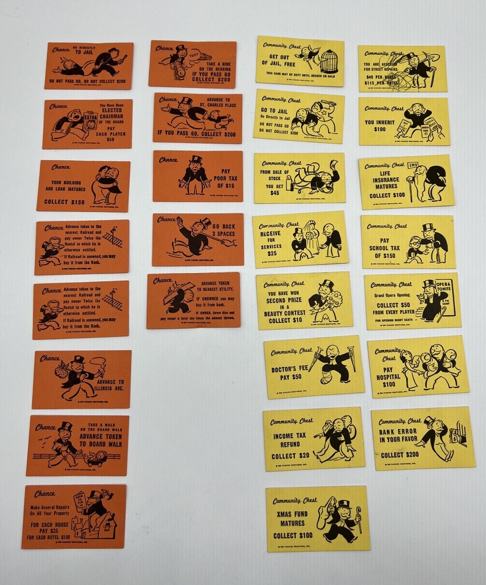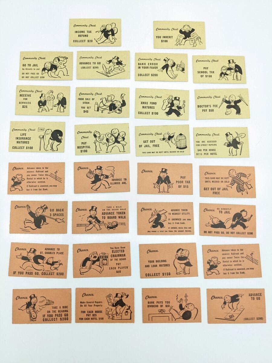 Monopoly Chance And Community Chest Cards 32pcs Replacement Game Pieces Older Style Regular Edition Etsy