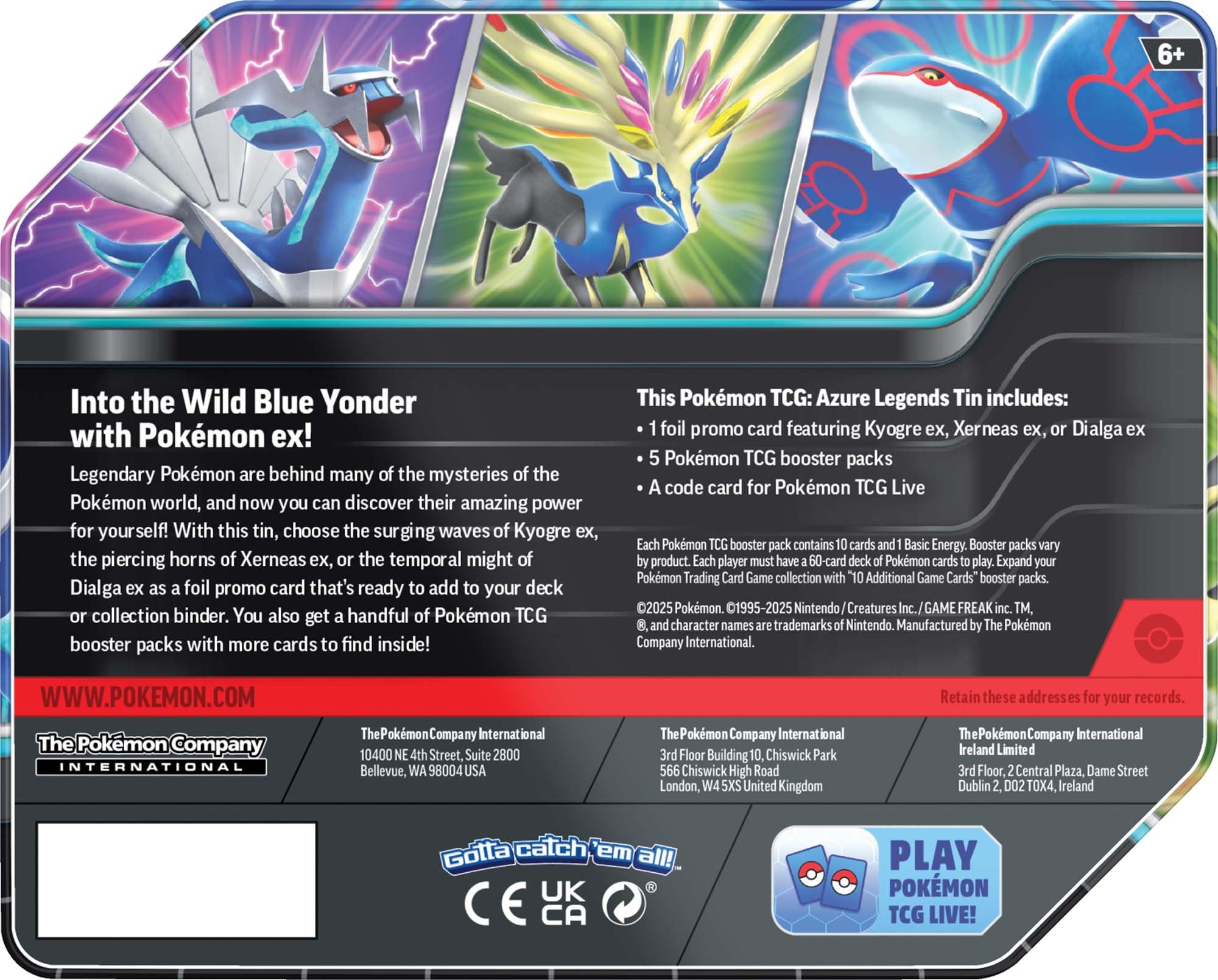Pok mon TCG Azure Legends Tin Kyogre Ex Pok mon Center Official Site