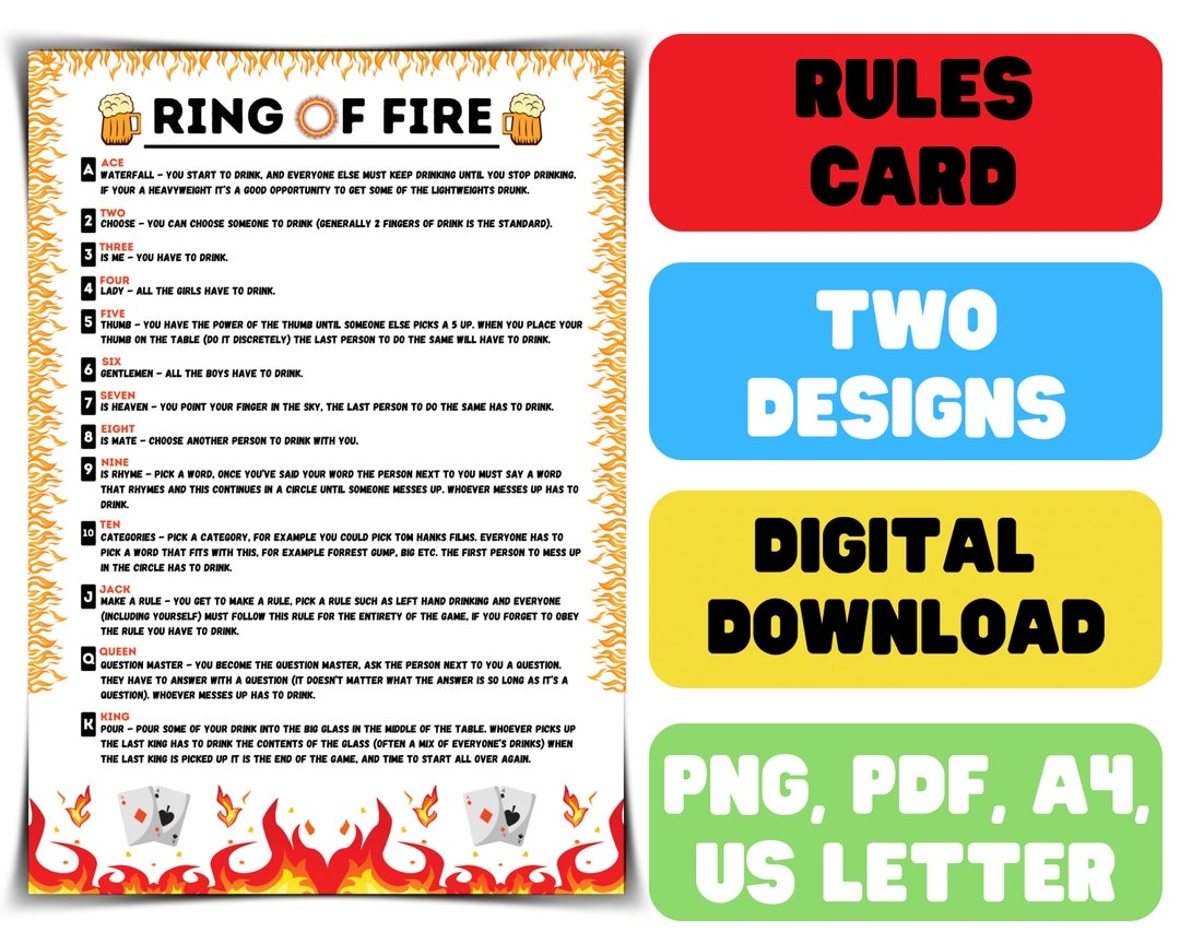 Ring Of Fire Rules Printable Drinking Ring Of Fire Rules Drinking Card Game Digital Download Downloadable File Etsy