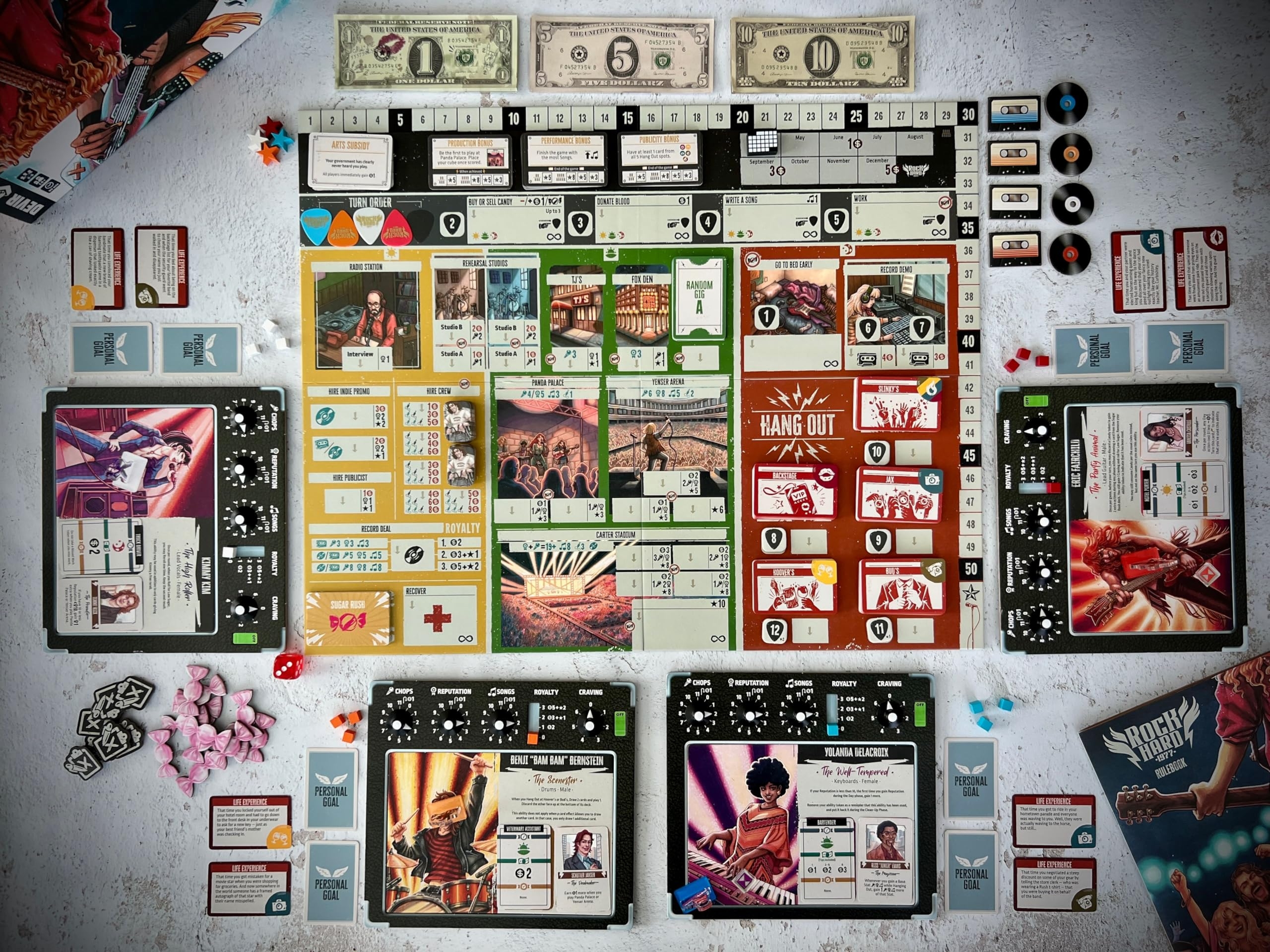 Amazon Devir Rock Hard 1977 Strategy Board Game For 2 5 Players Ages 14 Become A Rock Star In This 70s Themed Music Career Game With Worker Placement Mechanics 90 Minute Playtime Toys Games