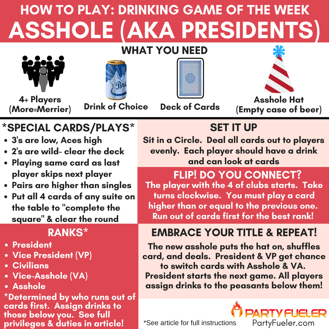 PartyFueler On X Enjoy ThirstyThursday With The Drinking Game Of The Week Asshole Is A Classic Card Game Check Out The Article For Full Instructions Https t co HRHXEuq7fr drinkinggame drinkinggames games party