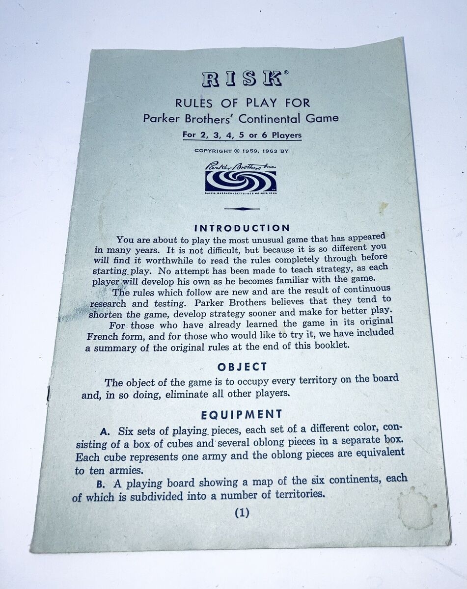 RISK Board Game Instructions Manual Rules Replacement Part Vintage 1959 1963 QQ EBay
