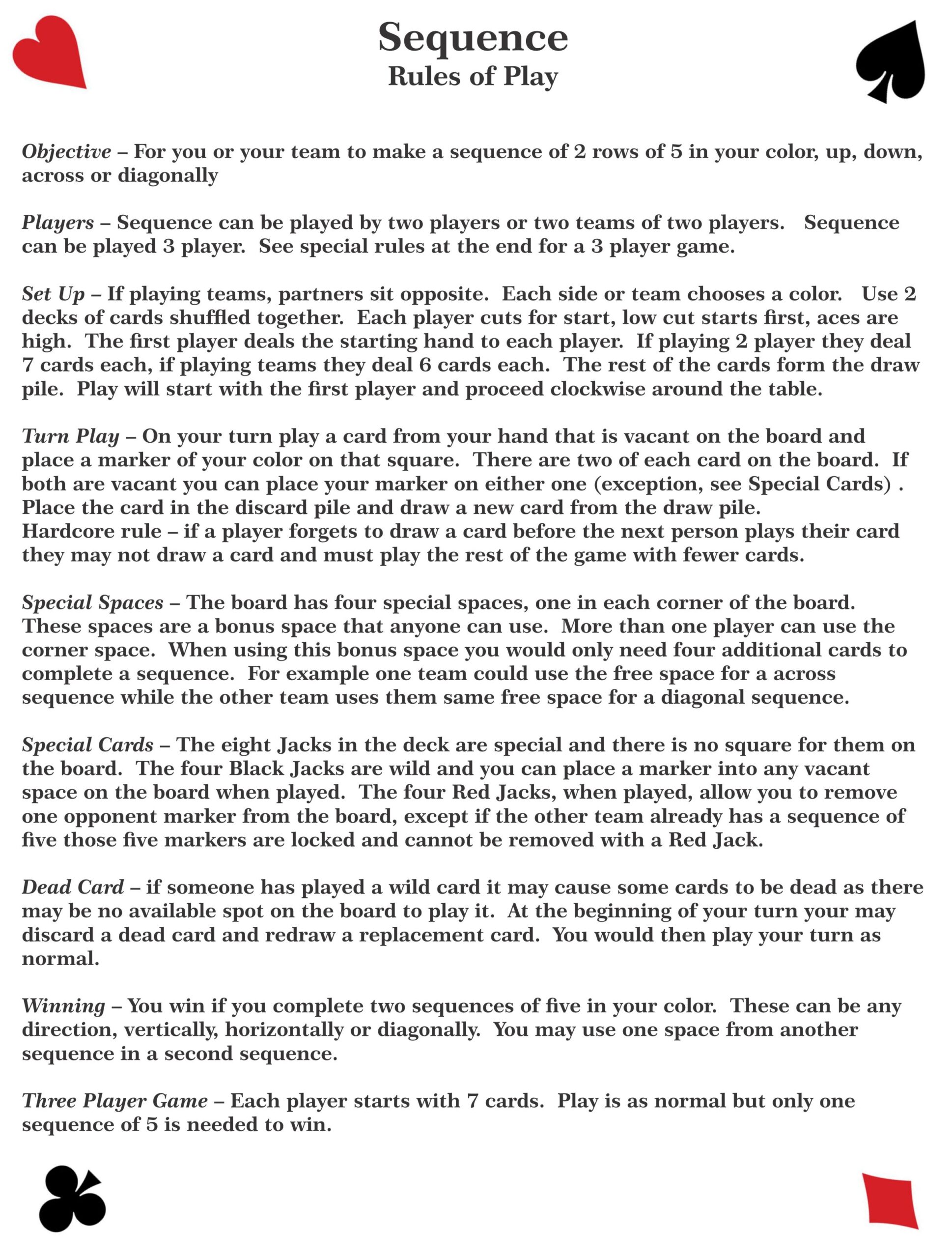 Sequence Card Game Rules