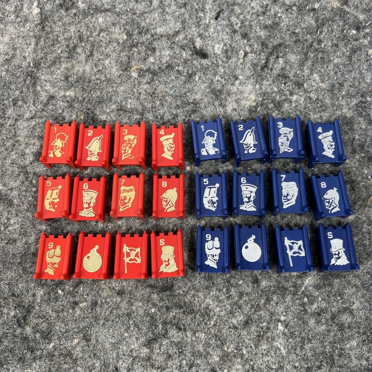 1961 Stratego Board Game Replacement Plastic Pieces Lot Of 80 Blue And Red EBay