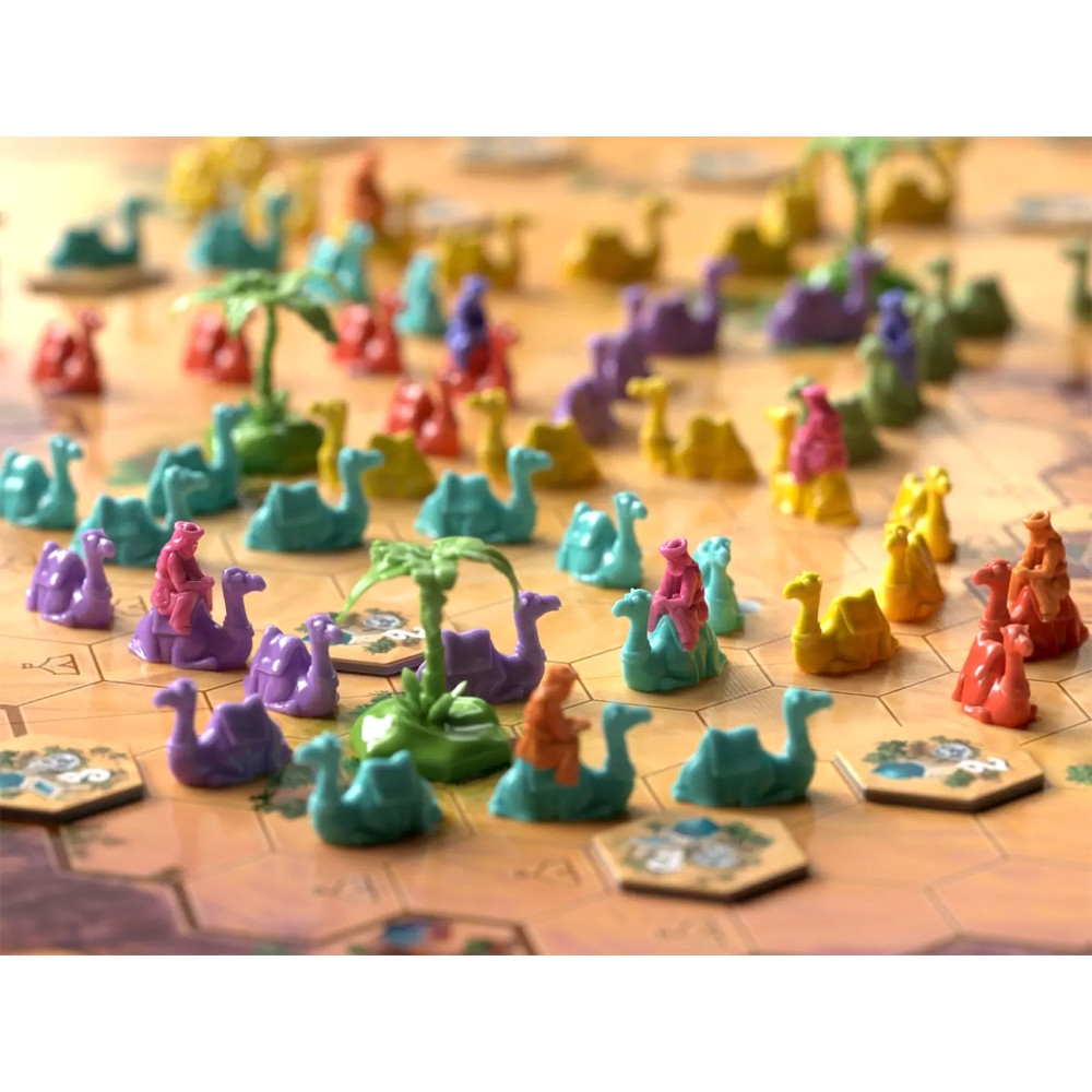 One of the unique features of Through the Desert is the modular board, which changes with each game, offering endless replayability. This variability keeps players engaged and coming back for more, as they explore new strategies and adapt to different board layouts.