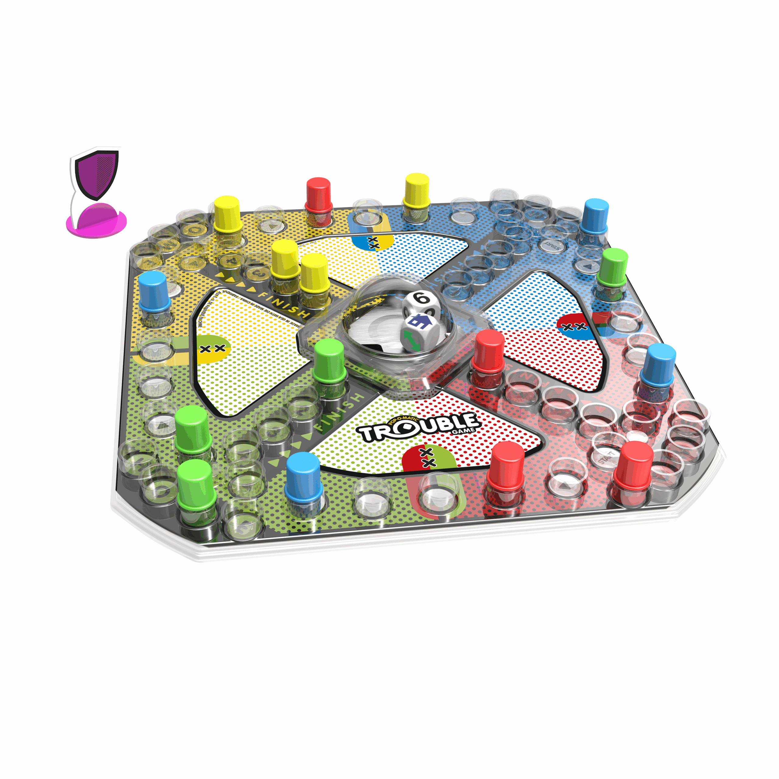 One of the key features of trouble board game is the iconic Pop-O-Matic dice roller. No more worry about losing dice under the couch or having them roll off the table – just give it a satisfying pop and see where your piece lands!