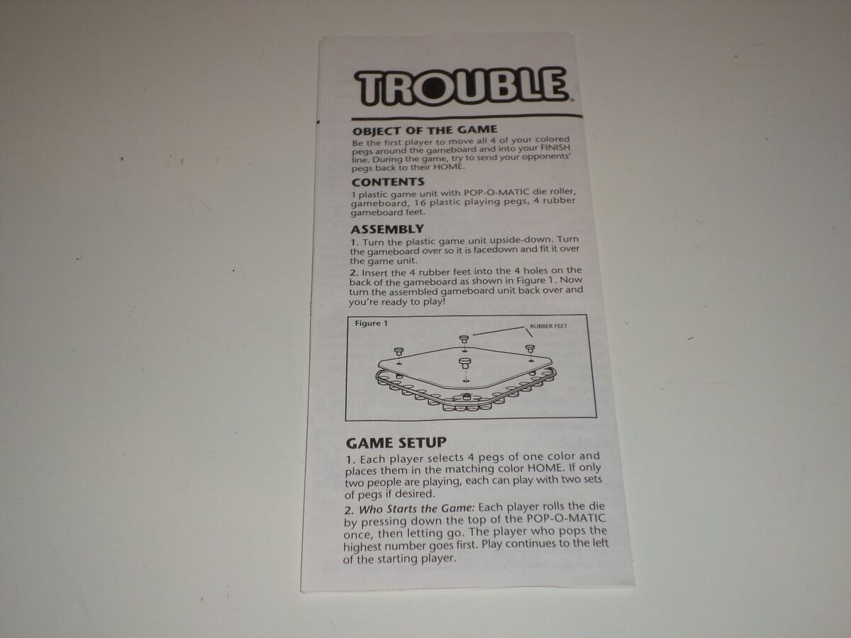 Instructions Manual Rules For Trouble Board Game Pop o Matic Dice Roller Includes Power Die And Shield Game For Ages 5 And Up Board Game Hasbro