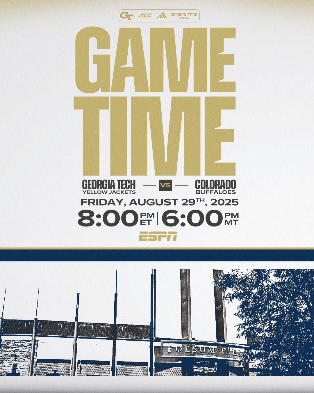 Kickoff Time Set For Season Opener At Colorado Football Georgia Tech Yellow Jackets